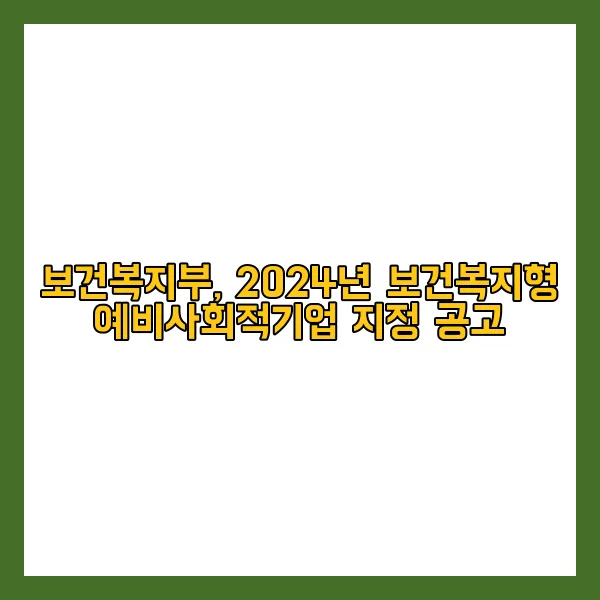 보건복지부, 2024년 보건복지형 예비사회적기업 지정 공고